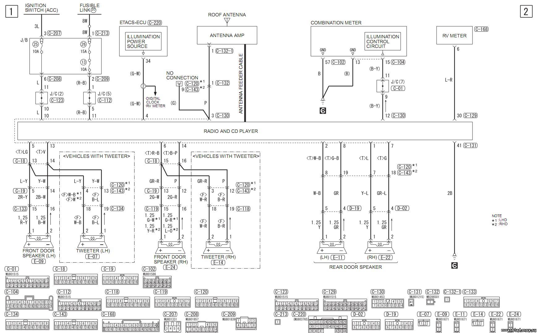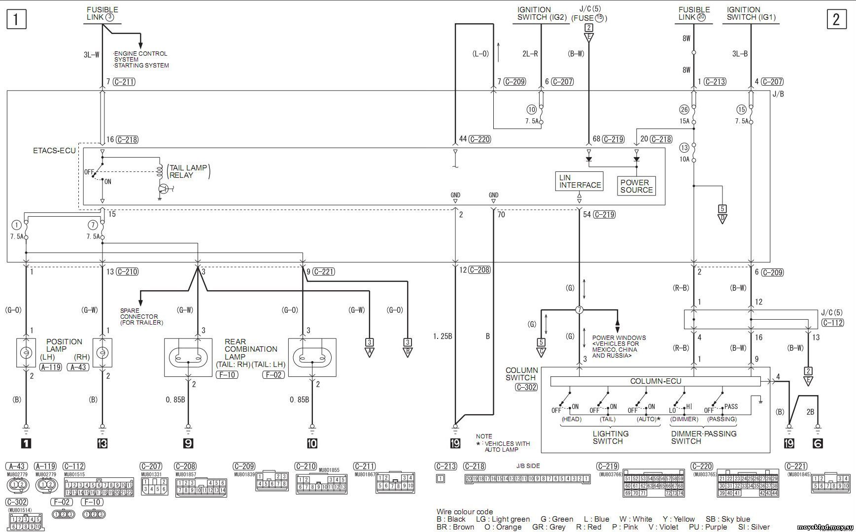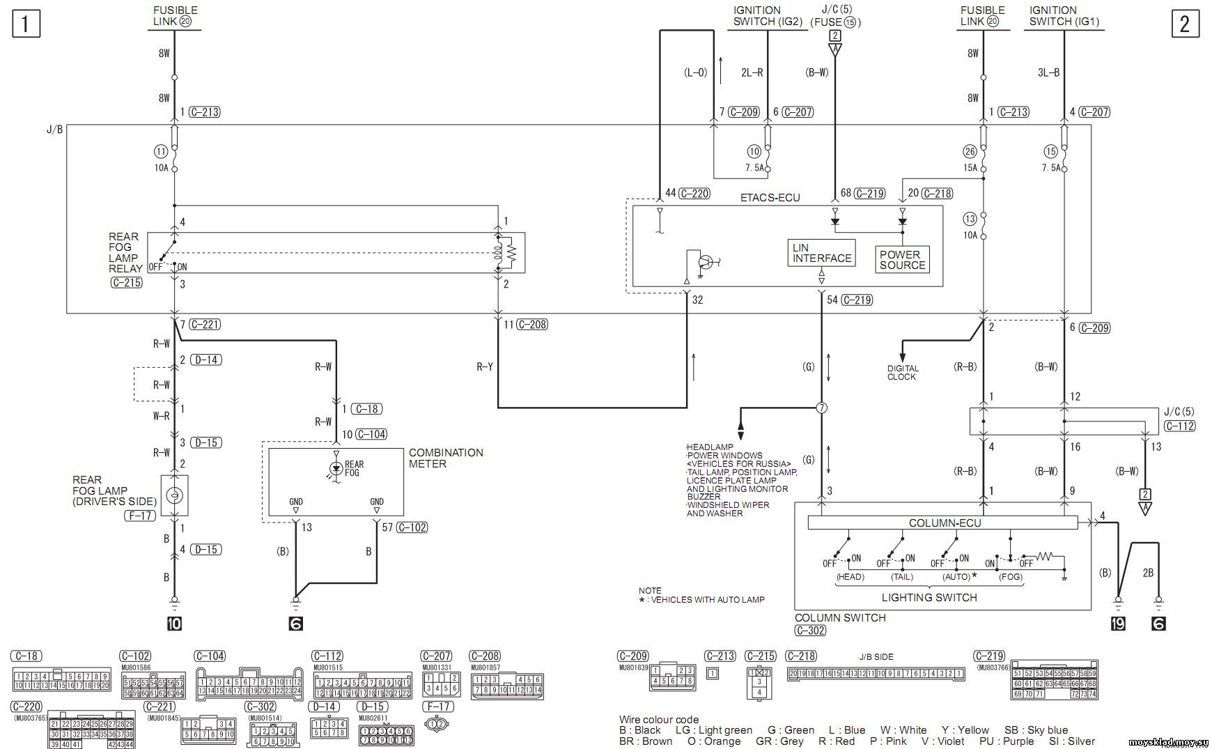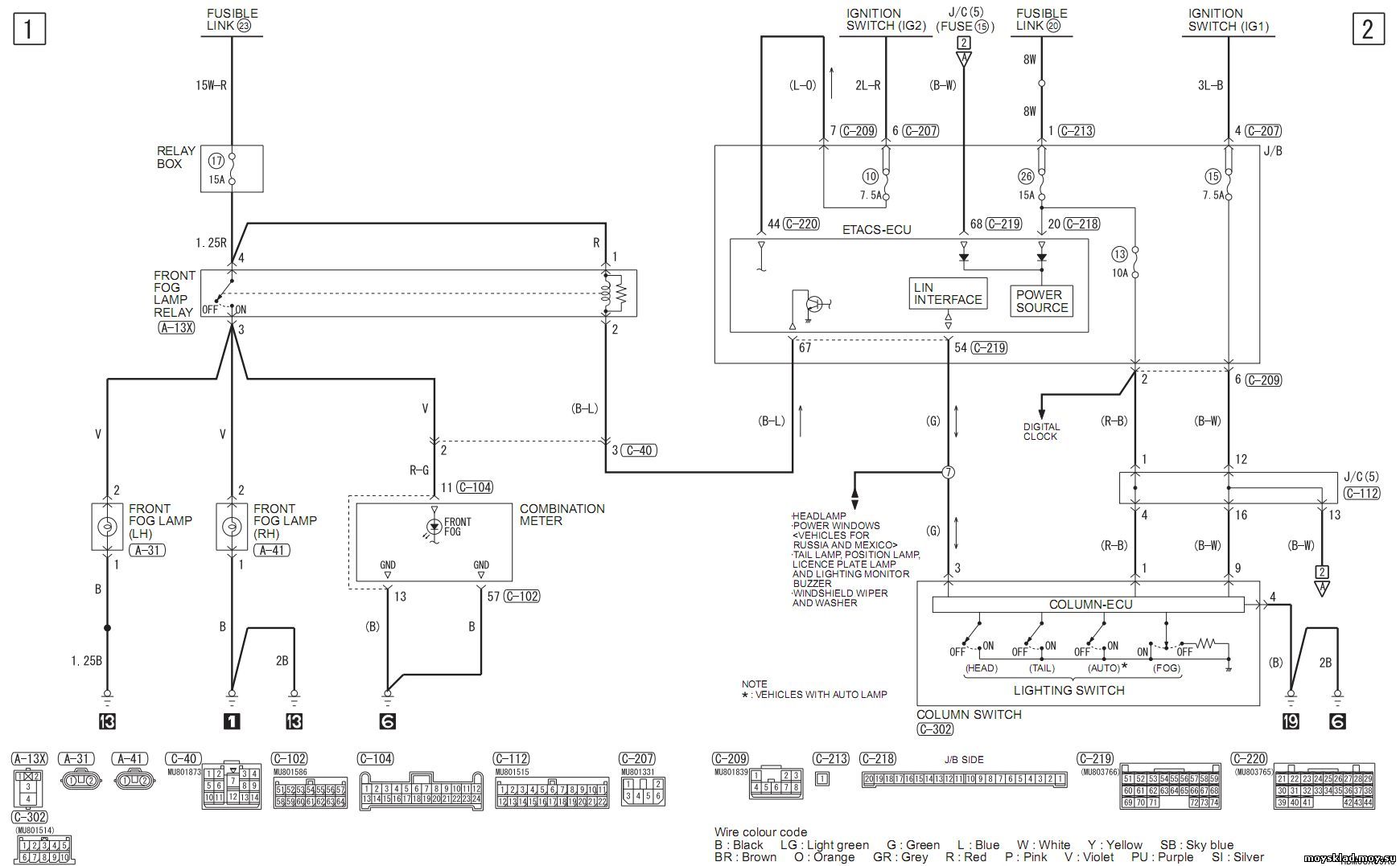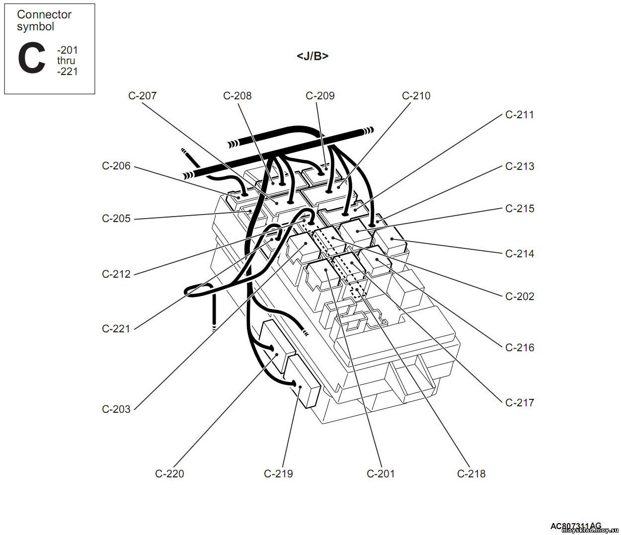 C - разъемы торпеды 201-221. Блок предохранителей